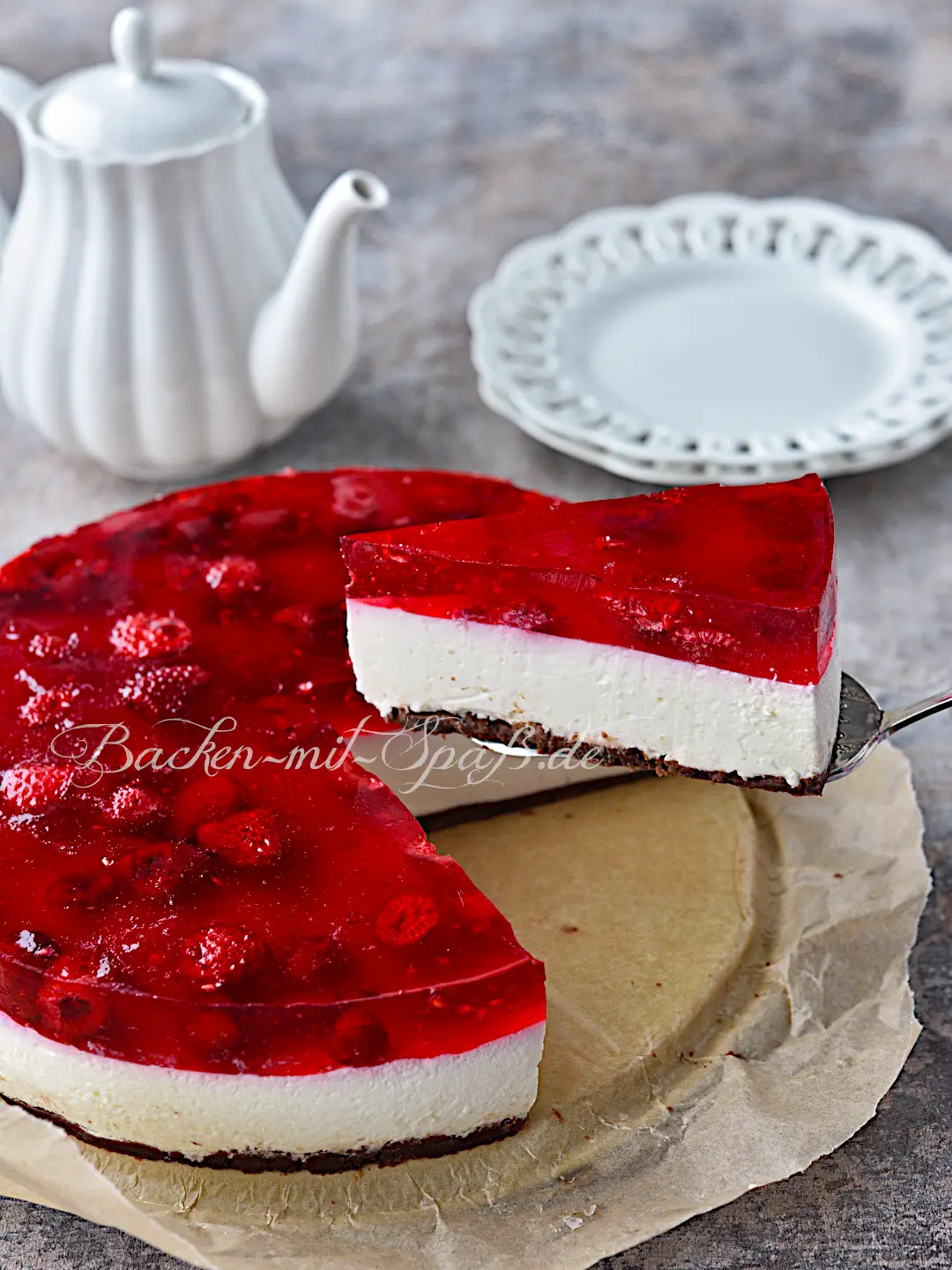 Klassischer Käsekuchen ohne Backen mit Götterspeise